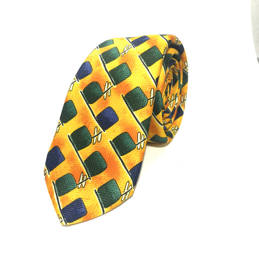 Frank PierceStock bajoCorbata Picapiedra Corbata de color amarillo con estampados de colores azul y verde contrastantes. Un accesorio atrayente de miradas de impacto en ...