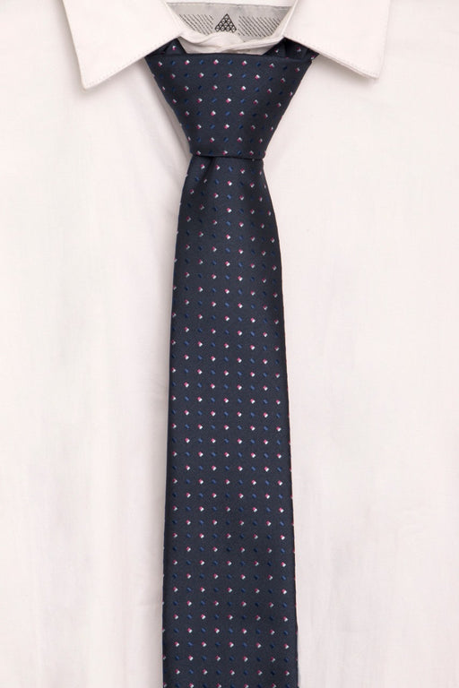 Frank PierceEn stockCorbata Semi-Slim London Heart Corbata de color azul oscuro con prints en formas de pequeños cuadros alrededor del accesorio, unos de color azul ma...