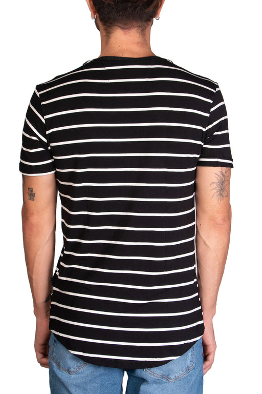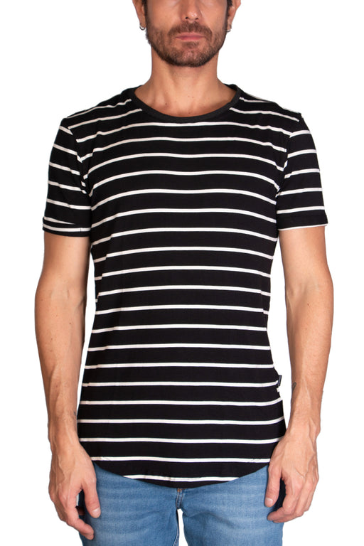 Frank PierceStock bajoCamiseta Sailor Negro Camiseta color negro , 50% algodón y 50% viscosa, detalla en el estampado a rayas de color blanco alrededor de toda la prenda...