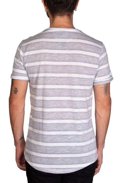 Frank PierceStock bajoCamiseta Alterna Gris Camiseta a rayas de color blanco y gris, 100% algodón, cuello redondo con rib de color blanco a tono, fresca y cómoda. Ideal ...