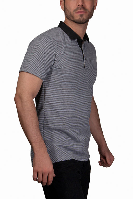 Frank PierceStock bajoPolo de moda de color Gris, compuesto de hilos 100% algodón, un estilo único, tela con detalle de lineas de color negro alrededor de la prenda, cue...