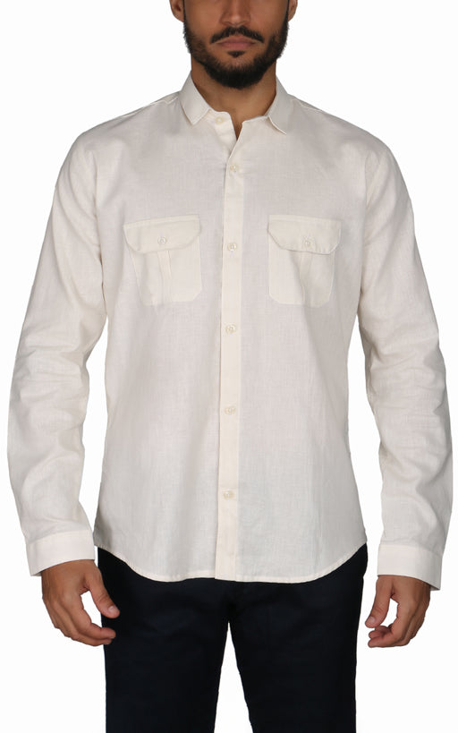 Frank PierceStock bajoCamisa Lino Cargo Crudo Camisa de lino 100%, color crudo, con bolsillo tipo cargo en ambos lado del pecho. Ideal para eventos espéciales q requi...
