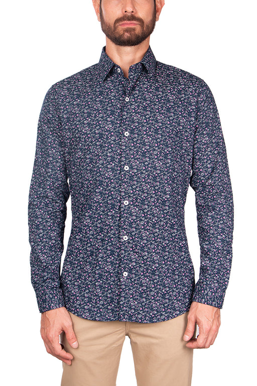 Frank PierceStock bajoCamisa Confort Fit Monet Azul Turqui Camisa en algodon 100%, de color azul turqui con prints de pequeñas flores de color rosa, botones transparente...
